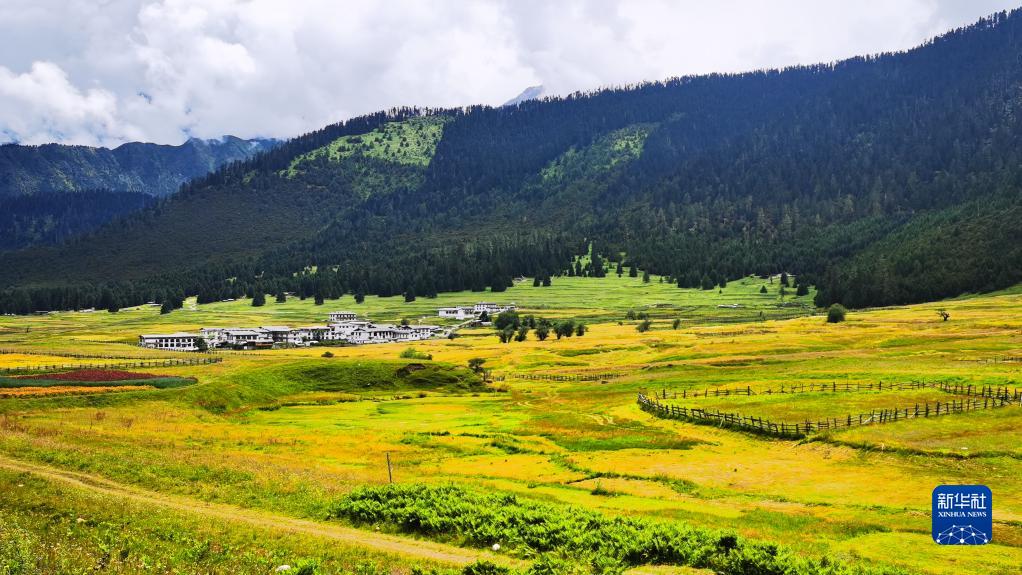 夏日的魯朗鎮,溪水潺潺,鮮花盛開,藏式村寨點綴其間,勾畫出一幅恬靜、優美的“高原山居圖”。