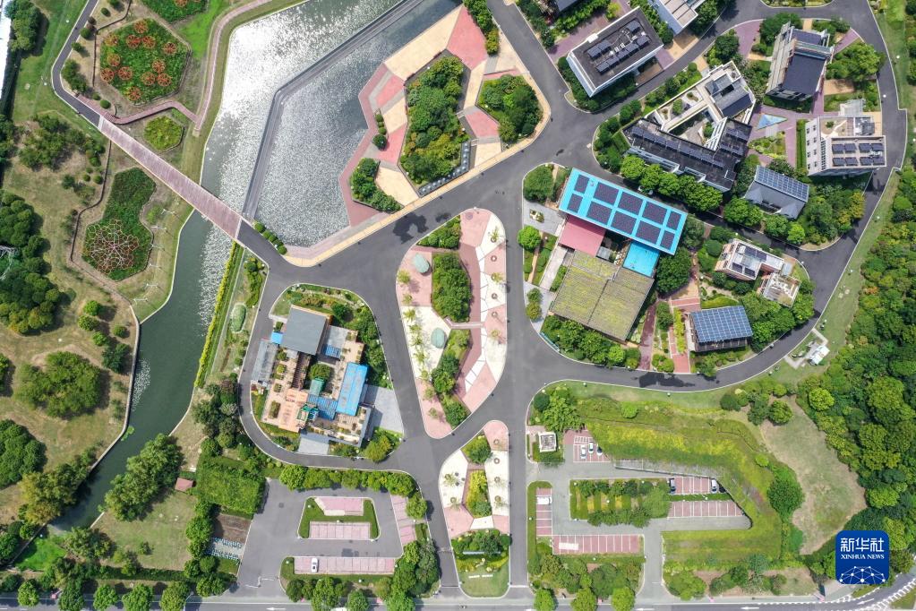8月7日拍攝的位于武進區的江蘇省綠色建筑博覽園景色(無人機照片)。