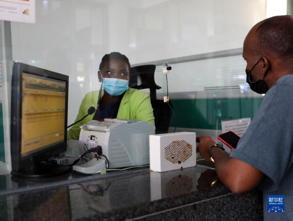 7月27日,售票員艾格尼絲(左)在肯尼亞蒙內鐵路蒙巴薩終點站售票。