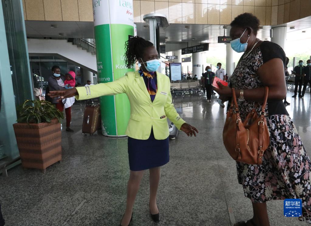 7月27日,客運員莫妮卡(左)在肯尼亞蒙內鐵路蒙巴薩終點站引導乘客乘坐電梯。