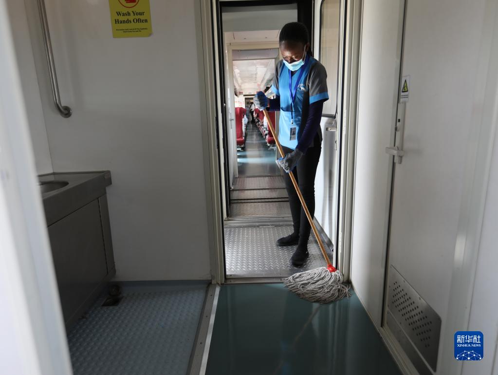 7月29日,清潔工莫希在肯尼亞蒙內鐵路客運列車上打掃衛生。
