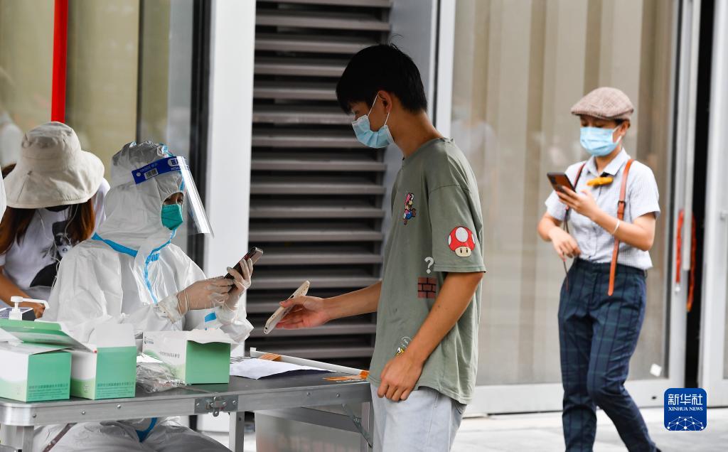 8月7日,居民在??谑旋埲A區萬象城采樣點登記信息。