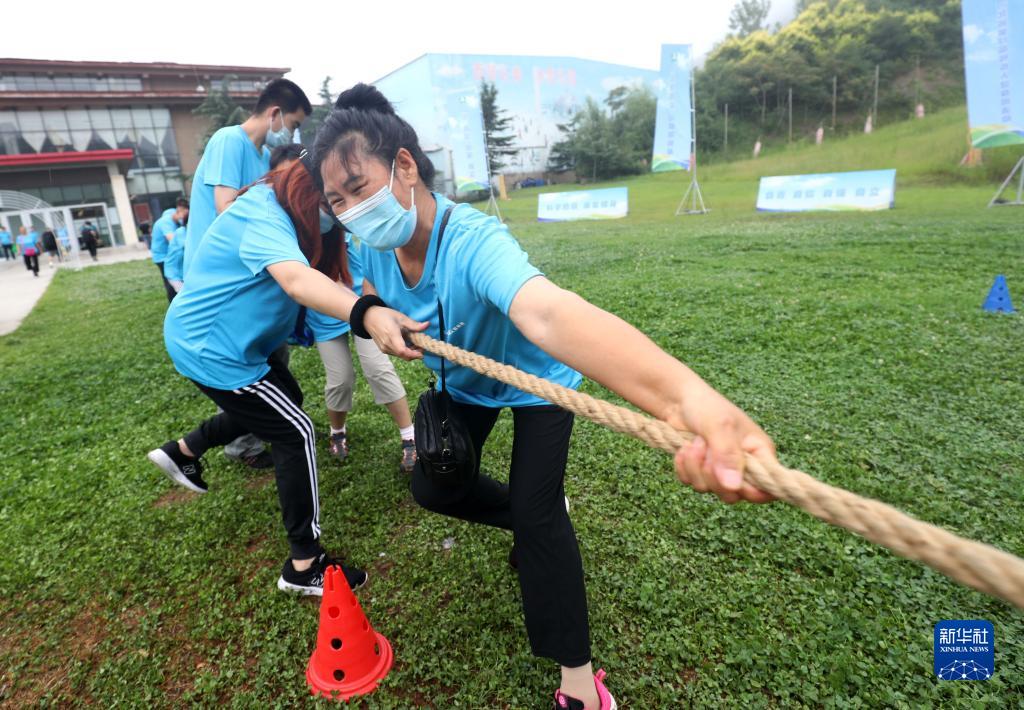 8月7日,在河北省石家莊市鹿泉區西部長青景區,人們進行拔河比賽。