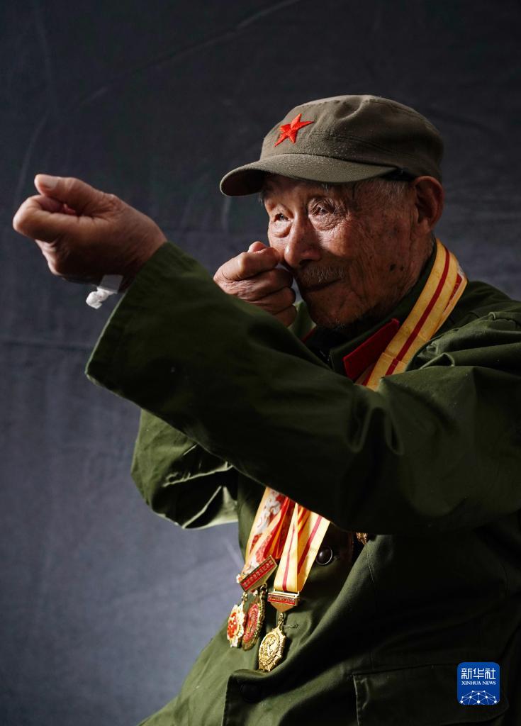 6月17日,在江蘇省宿遷市泗陽縣,抗戰老戰士殷道傳講述抗戰故事。