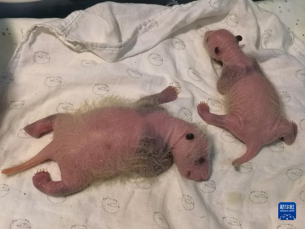 這是8月4日拍攝的海歸大熊貓“二順”產下的大熊貓雙胞胎幼仔。