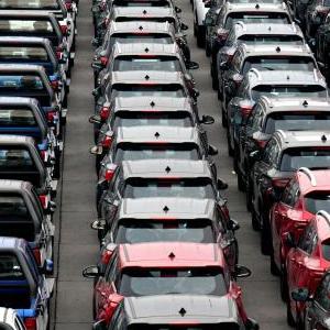 8月7日,商品車在山東港口青島港大港公司八號碼頭等候裝船(無人機照片)。