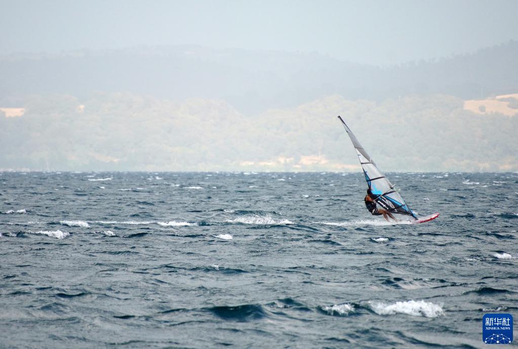 8月7日,游客在意大利布拉恰諾湖沖浪。