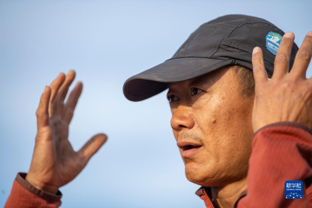 在新疆烏魯木齊南郊山間,陳瑞峰在分享滑翔傘飛行體驗(6月11日攝)。新華社記者 胡虎虎 攝