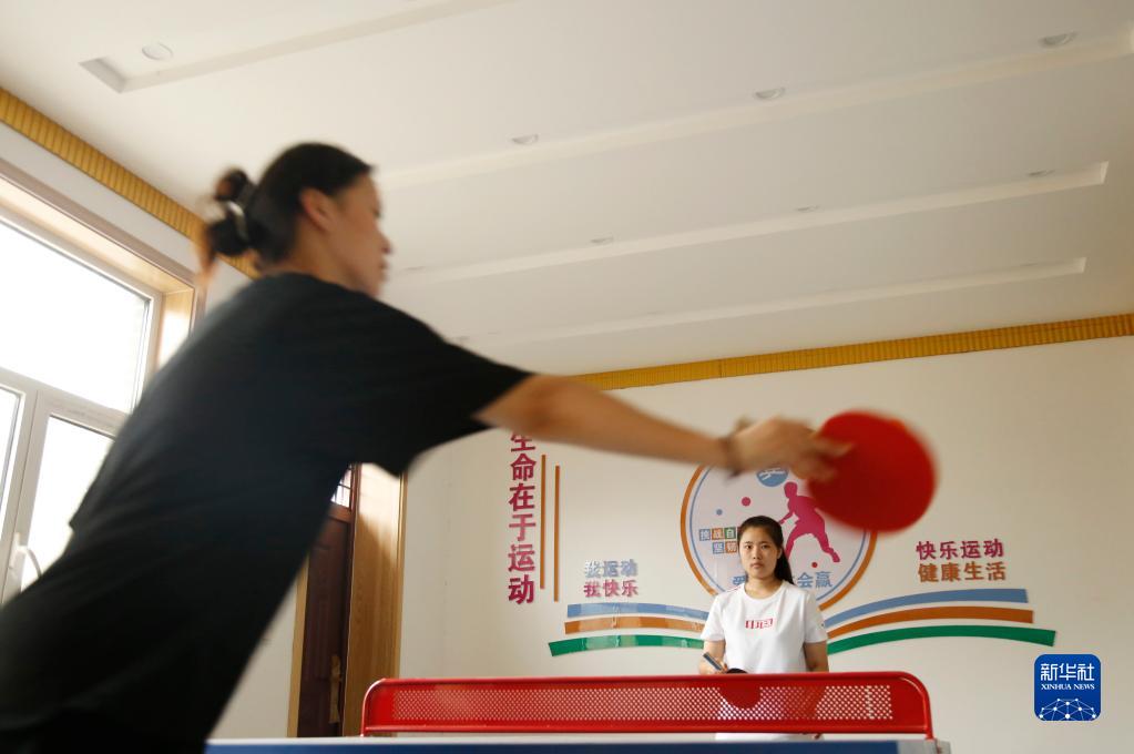 8月8日,河北省邢臺市南和區河郭鎮郄莊村村民在打乒乓球。