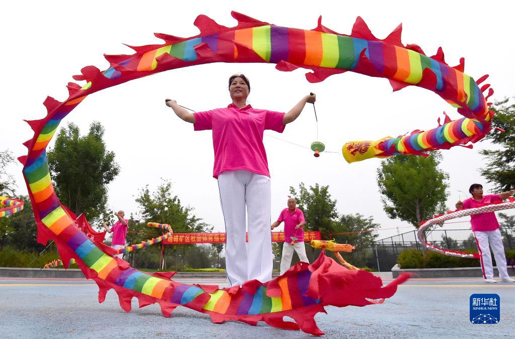 8月8日,健身愛好者在河北省邯鄲市峰峰礦區城市運動公園抖空竹。