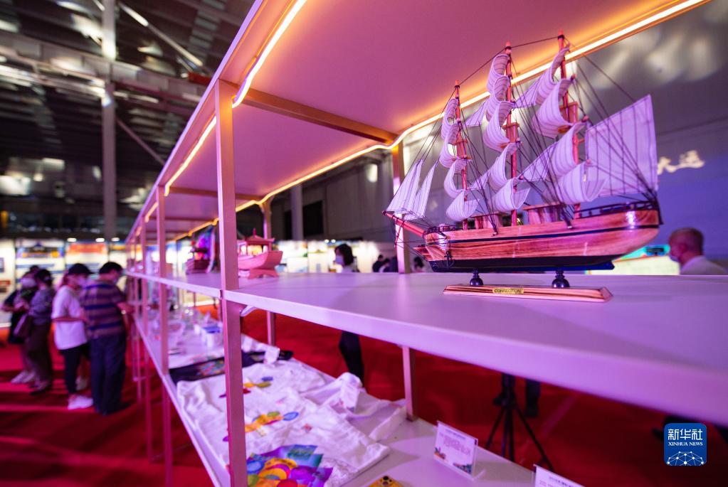 8月8日,在2022北京(國際)運河文化節開幕式現場,觀眾在觀看大運河文創展。