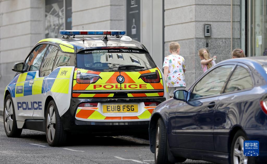 8月8日,幾名兒童從英國倫敦街頭的警車旁走過。