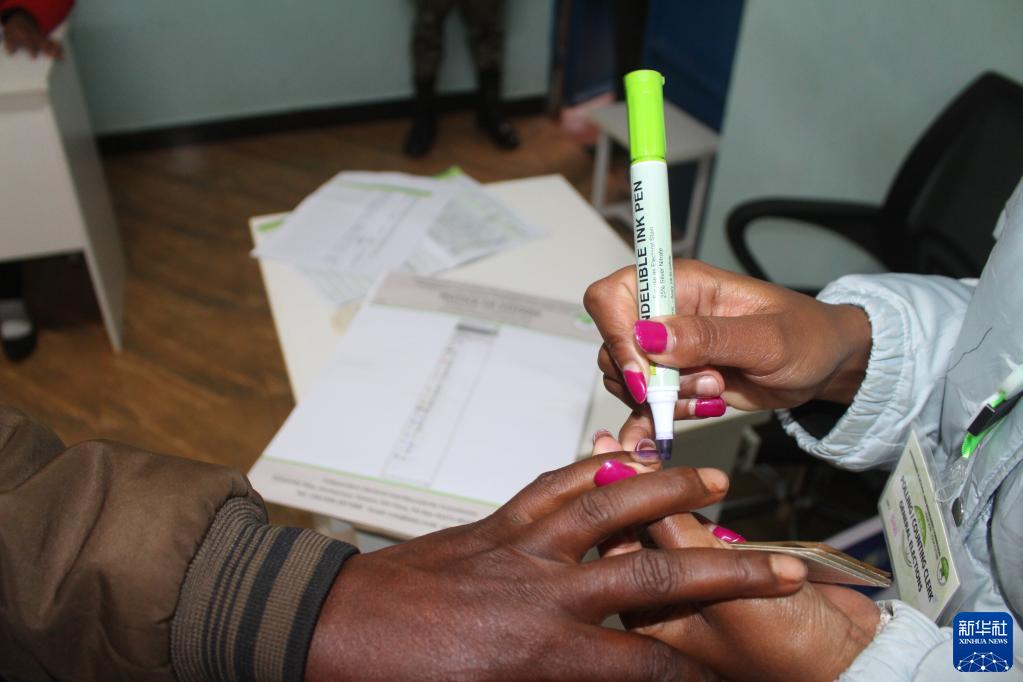 8月9日,在肯尼亞基安布郡一投票站,工作人員在完成投票的選民手指上做標記。