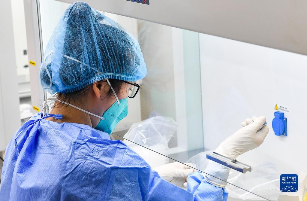 8月9日,江蘇省核酸檢測隊工作人員在實驗室投入使用前做準備工作。
