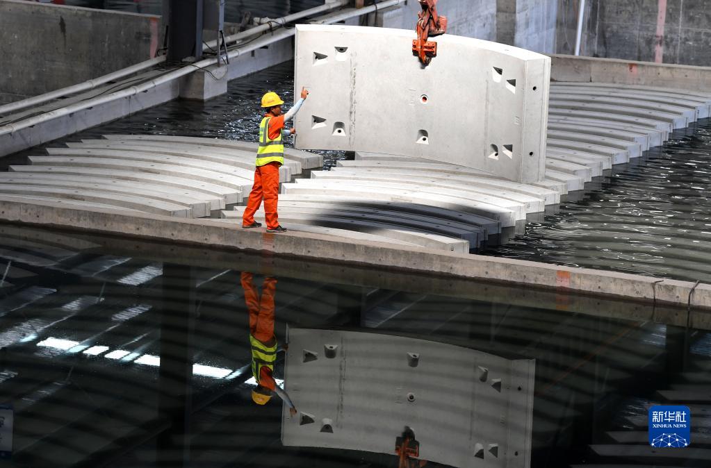 8月9日,工人在中鐵四局安徽智能制造有限公司盾構管片制造基地忙碌。