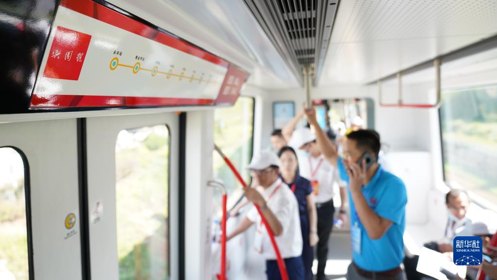 8月9日,乘客在試乘 “紅軌”試驗線列車。
