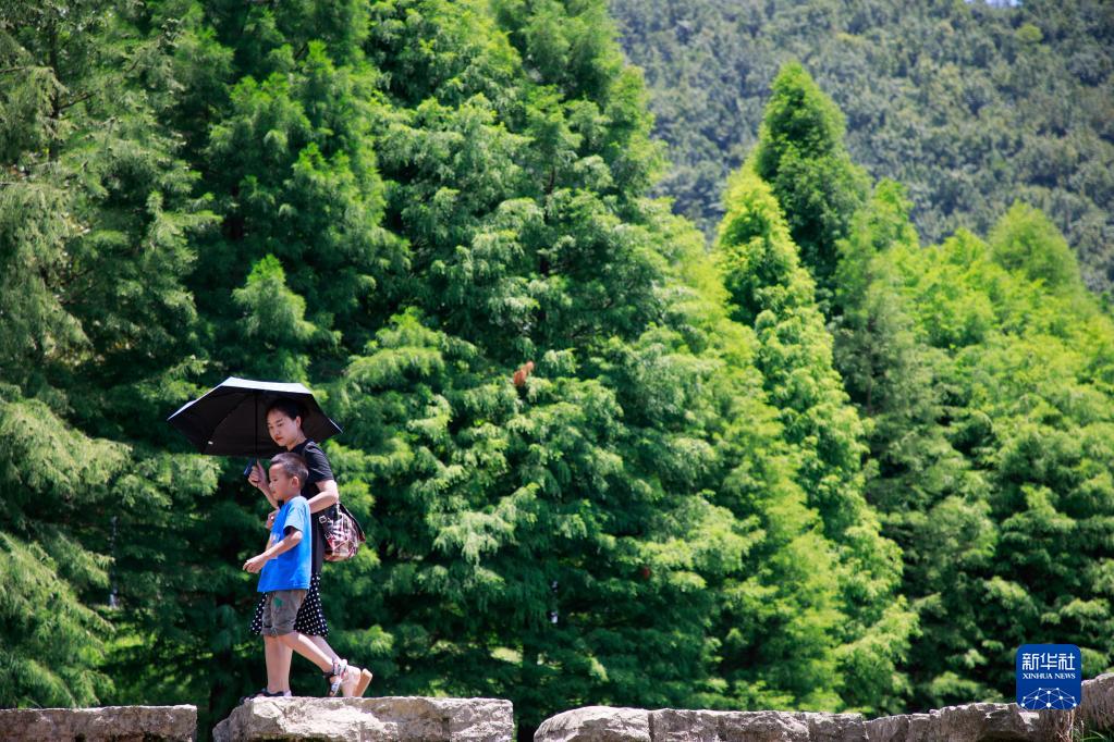 8月9日,游客在花溪國家城市濕地公園十里河灘景區內游玩。