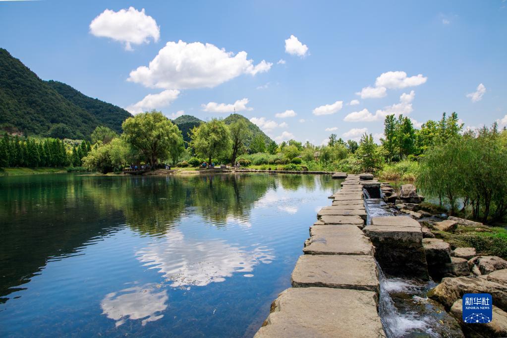 8月9日拍攝的花溪國家城市濕地公園十里河灘景區風光。