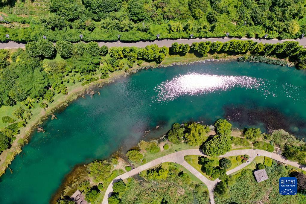 近日,貴陽市花溪國家城市濕地公園內處處綠意盎然,碧水青山吸引游人前來游玩。