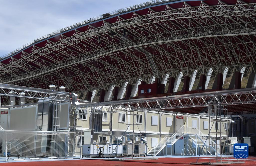 位于拉薩市柳梧新區拉薩市群眾文化體育中心內的方艙醫院(8月9日攝)。