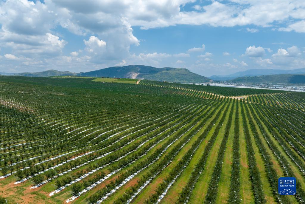 這是位于云南蒙自市草壩鎮的五八農業軟籽石榴種植基地(8月9日攝,無人機照片)。