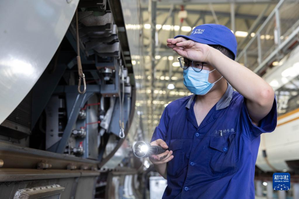 8月10日,動車組機械師張中琪在作業中擦拭汗水。 新華社記者 王翔 攝