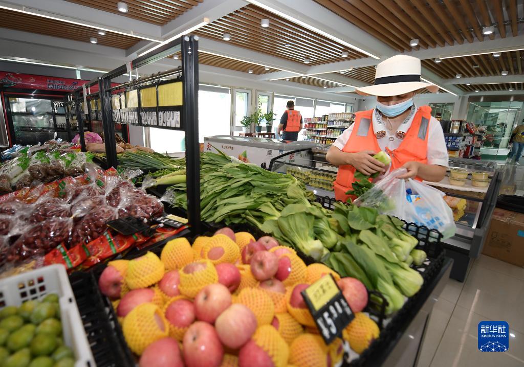 8月9日,船員在服務區的三峽水上溫情驛站的生活超市內選購蔬菜。 新華社記者 李賀 攝