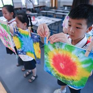從8月上旬開始,位于浙江省湖州市織里鎮的吳興實驗小學開啟了以傳統鄉土文化為落腳點的“博學課堂”,教授孩子們剪紙、扎染、刺繡、雕版等鄉土特色文化課程,讓學生們充分了解和傳承鄉土文化,充實暑期生活。