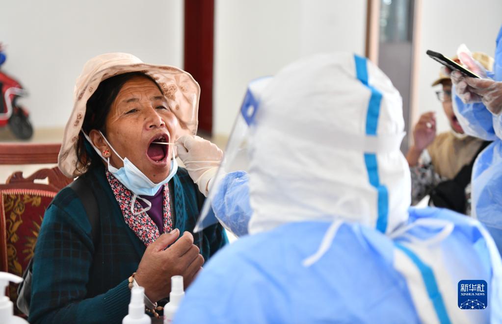 8月10日上午,居民在拉薩市某小區核酸采樣點接受核酸采樣。