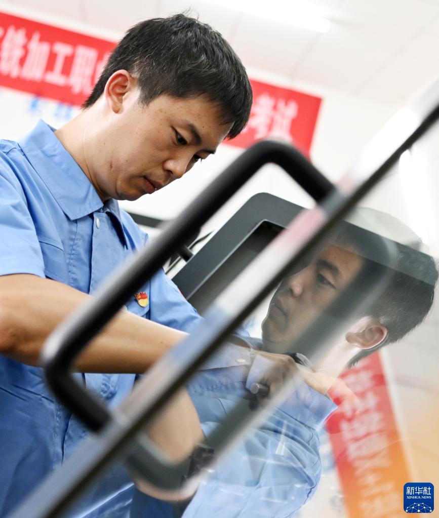 許超在天津機電職業技術學院的教室內操作(8月8日攝)。新華社記者 李然 攝