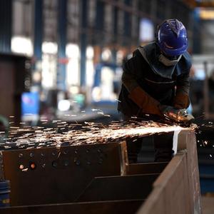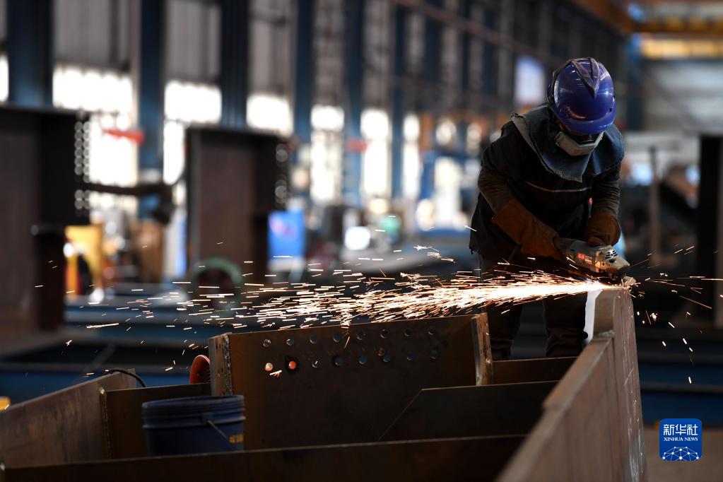 8月11日早晨,工人在中鐵四局鋼結構建筑公司制造分公司生產車間錯時作業。