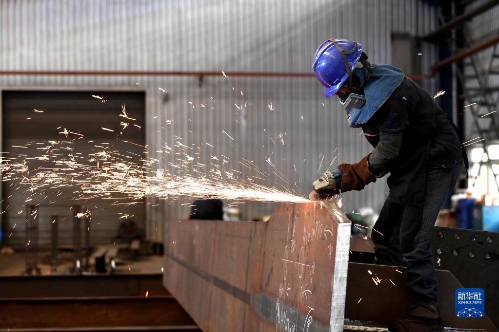 8月11日早晨,工人在中鐵四局鋼結構建筑公司制造分公司生產車間錯時作業。