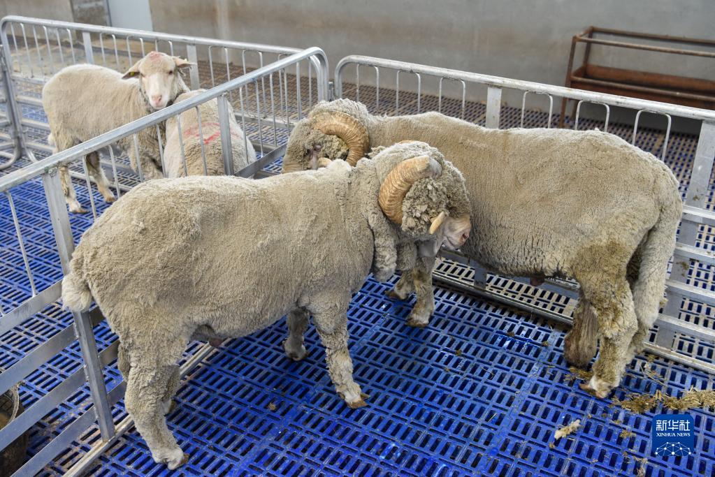 這是8月6日在新疆綿羊分子育種試驗基地拍攝的基因編輯的短尾細毛羊(左)和野生型長尾細毛羊。新華社記者 丁磊 攝