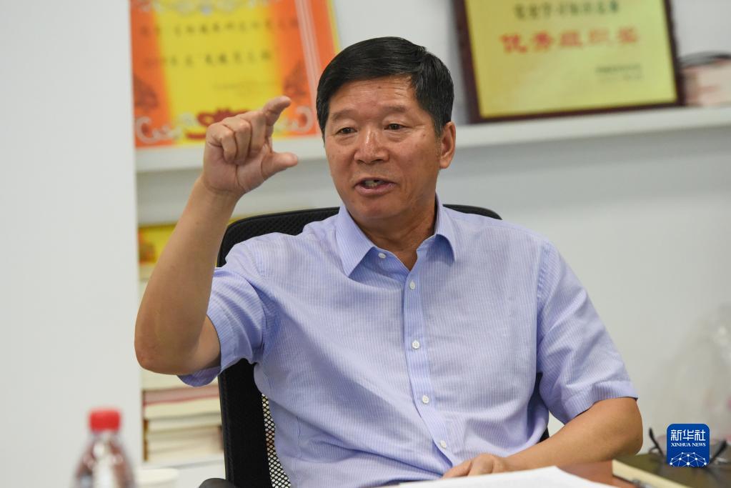 在新疆畜牧科學院,研究員劉明軍介紹基因編輯的短尾細毛羊(8月6日攝)。新華社記者 丁磊 攝