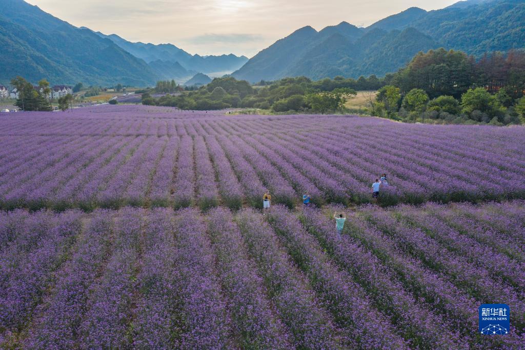 8月10日,游客在重慶市巫溪縣紅池壩風景區云中花海游玩(無人機照片)。