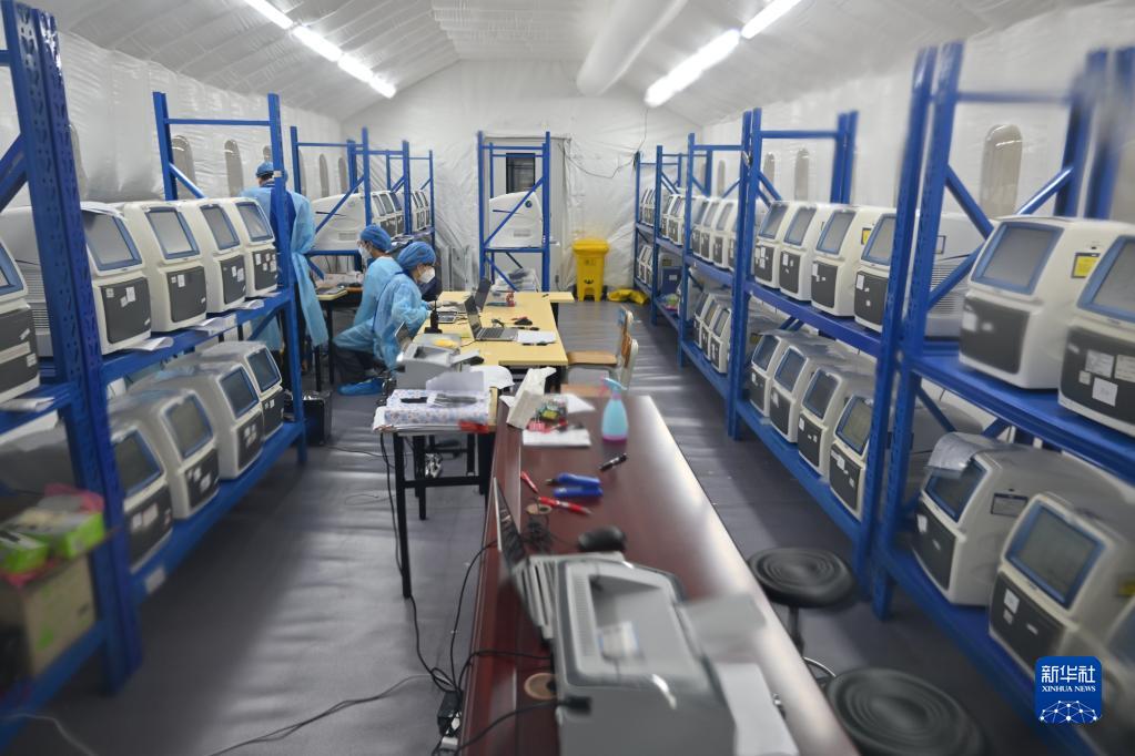 8月11日,廣東省援海南三亞核酸檢測隊的醫護人員在進行核酸檢測工作。