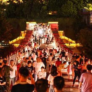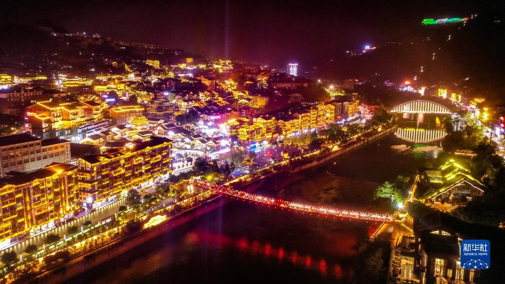 這是仁懷市茅臺鎮赤水河沿岸夜景(8月4日攝,無人機照片)。