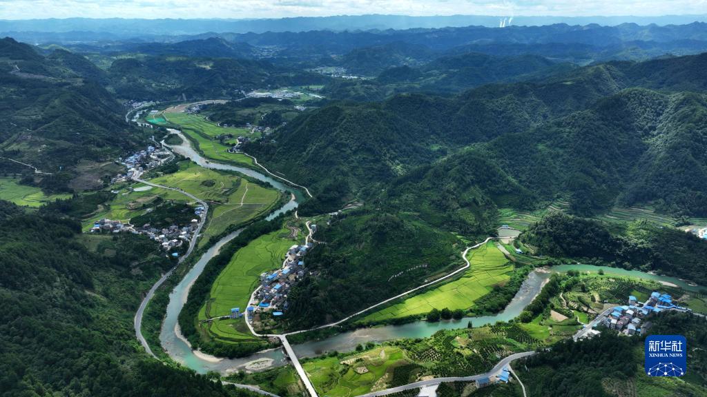 8月11日拍攝的貴州省黔東南苗族侗族自治州岑鞏縣注溪鎮周坪村的雜交水稻制種基地一景(無人機照片)。