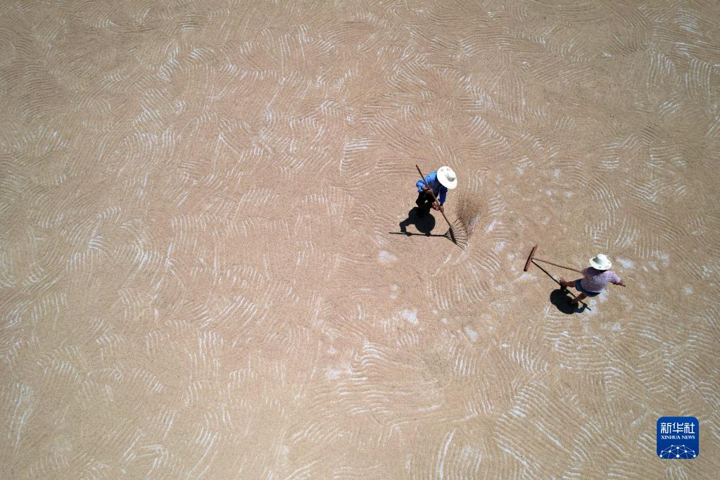 近日,水稻進入收獲期,各地農民抓緊農時收獲、晾曬稻谷。