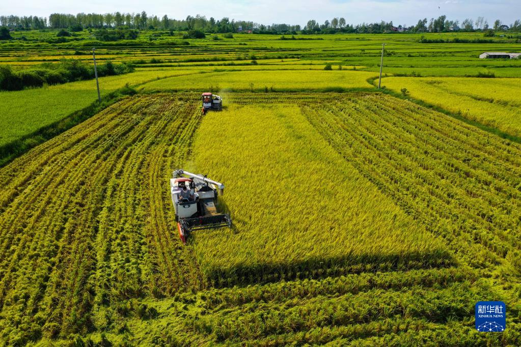 近日,水稻進入收獲期,各地農民抓緊農時收獲、晾曬稻谷。