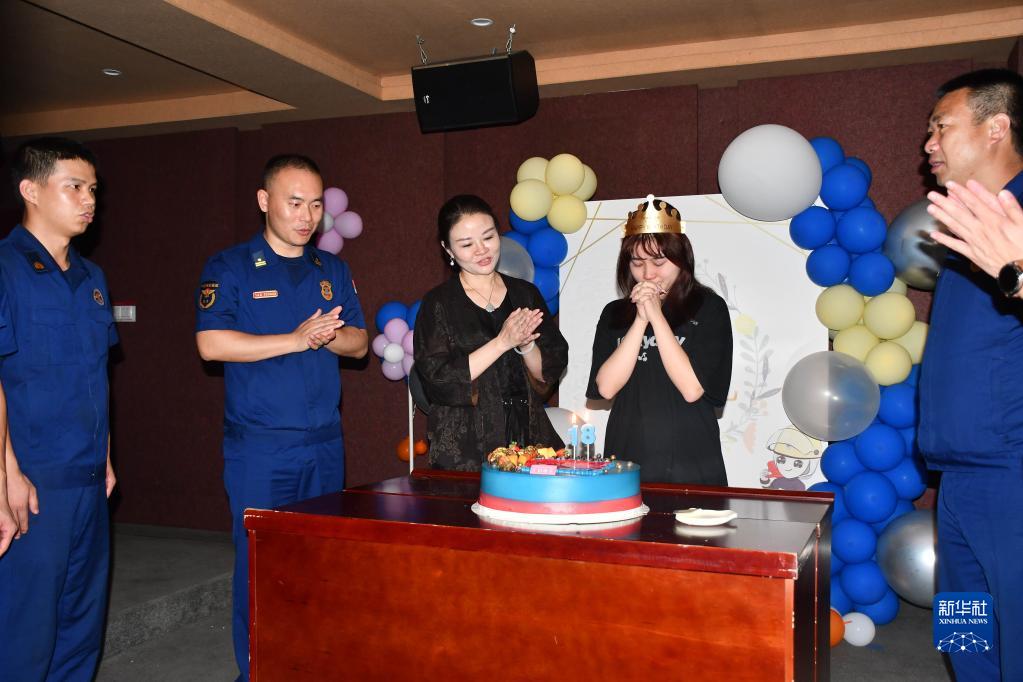 萍鄉市消防救援支隊的消防員們為陶佳煜(右二)慶祝18歲生日(7月11日攝)。