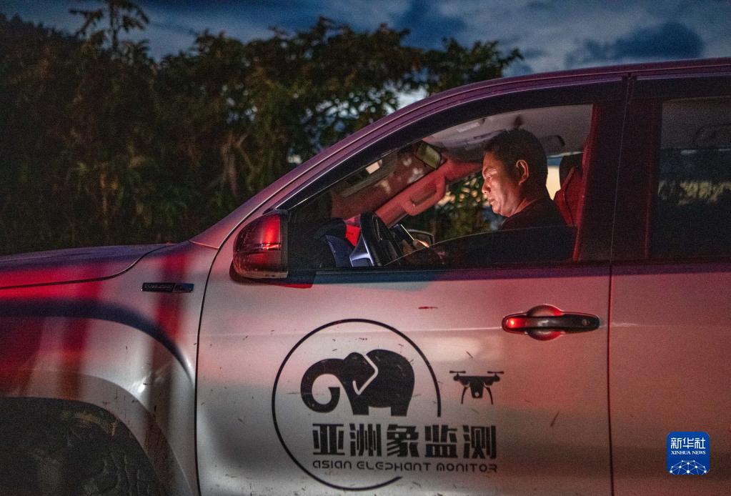 刁發興在上報亞洲象位置(7月31日攝)。新華社記者 江文耀 攝