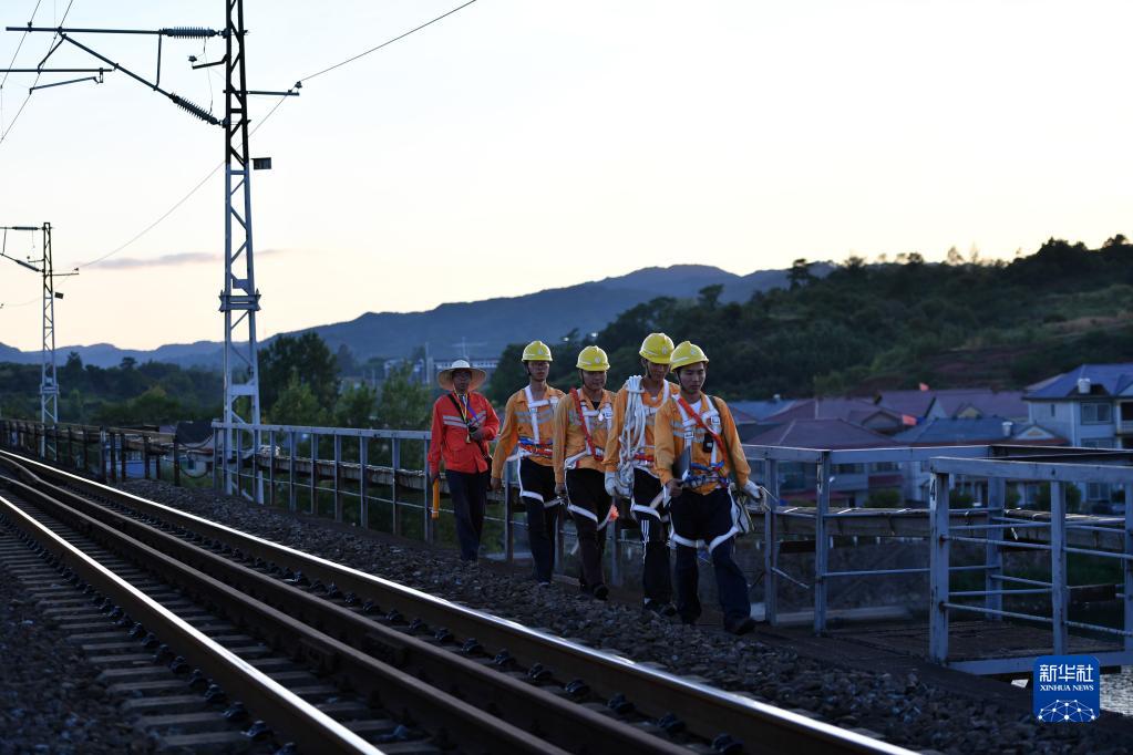 在廣鐵集團懷化工務段芷江橋隧檢查工區,橋隧工負責96.5公里管轄里程內62座橋梁、52座隧道和525座涵洞的日常周期性檢查。近日,湖南省懷化市持續高溫天氣,橋隧工們堅守崗位,避開高溫錯峰巡檢,以及時發現安全隱患,保障暑運行車安全。