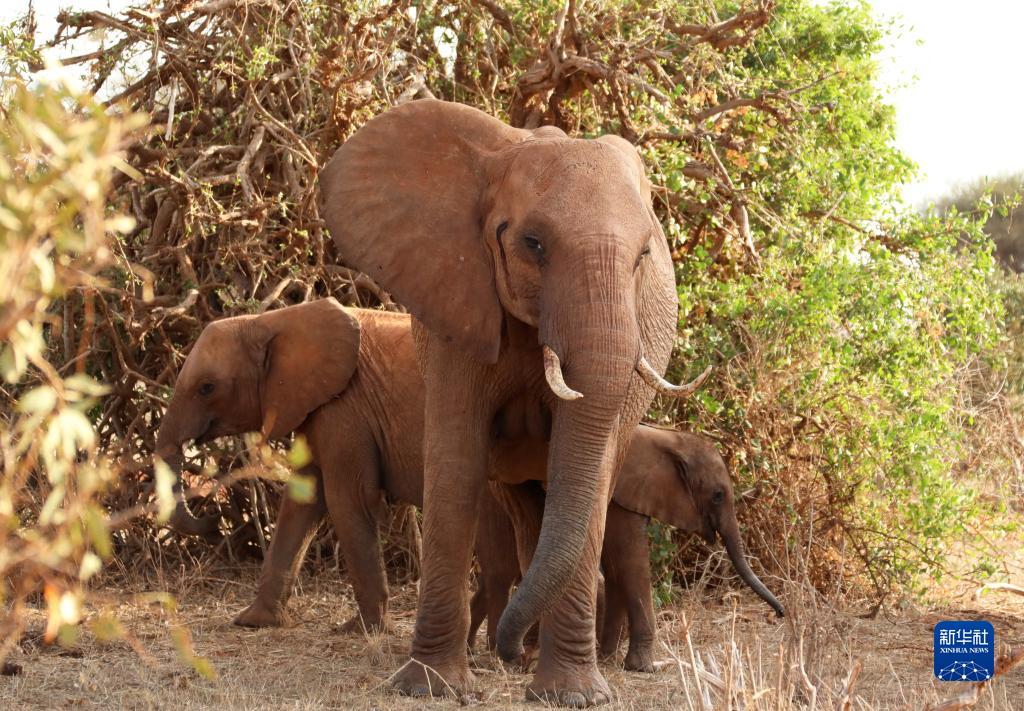 這是7月29日在肯尼亞察沃國家公園拍攝的大象。
