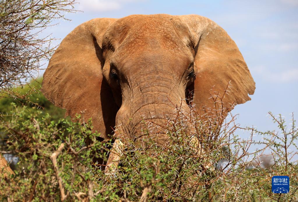 這是7月28日在肯尼亞察沃國家公園拍攝的大象。