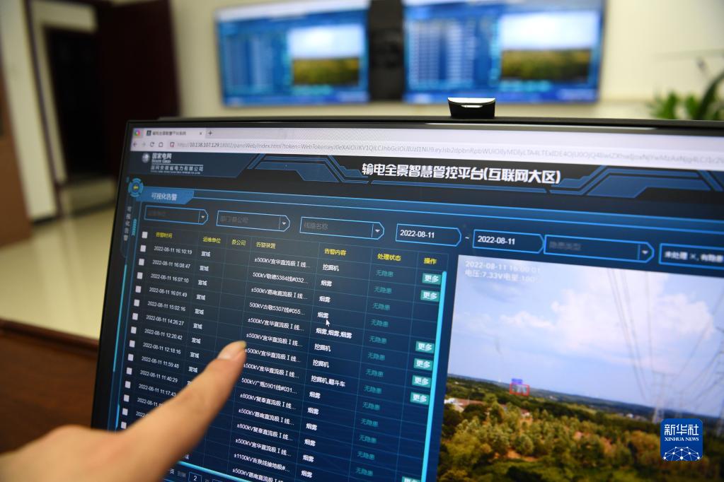 8月11日,安徽送變電工程有限公司廣德運檢站運維人員通過輸電全景智慧管控平臺查看預警信息。
