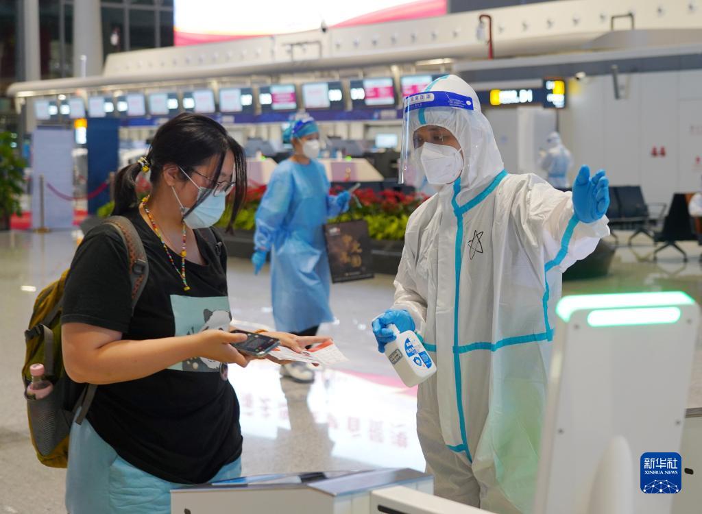 8月12日凌晨,首批660名因疫情滯留??诘穆每蛷暮?诿捞m國際機場乘飛機離島返程。