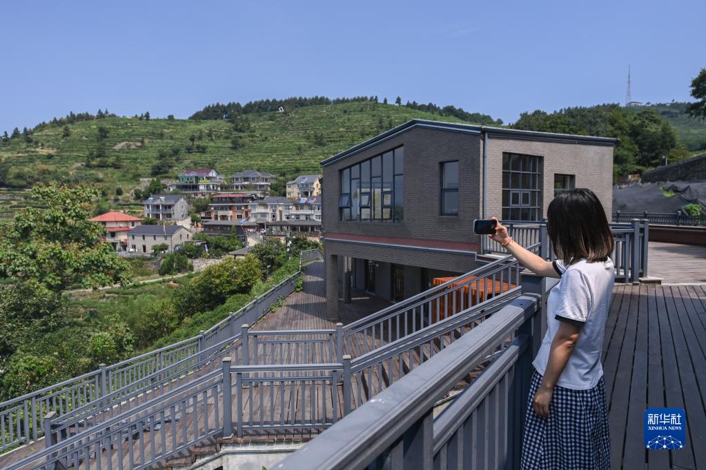 8月12日,游客在安頂村的云霧茶吧外拍攝鄉村風景。