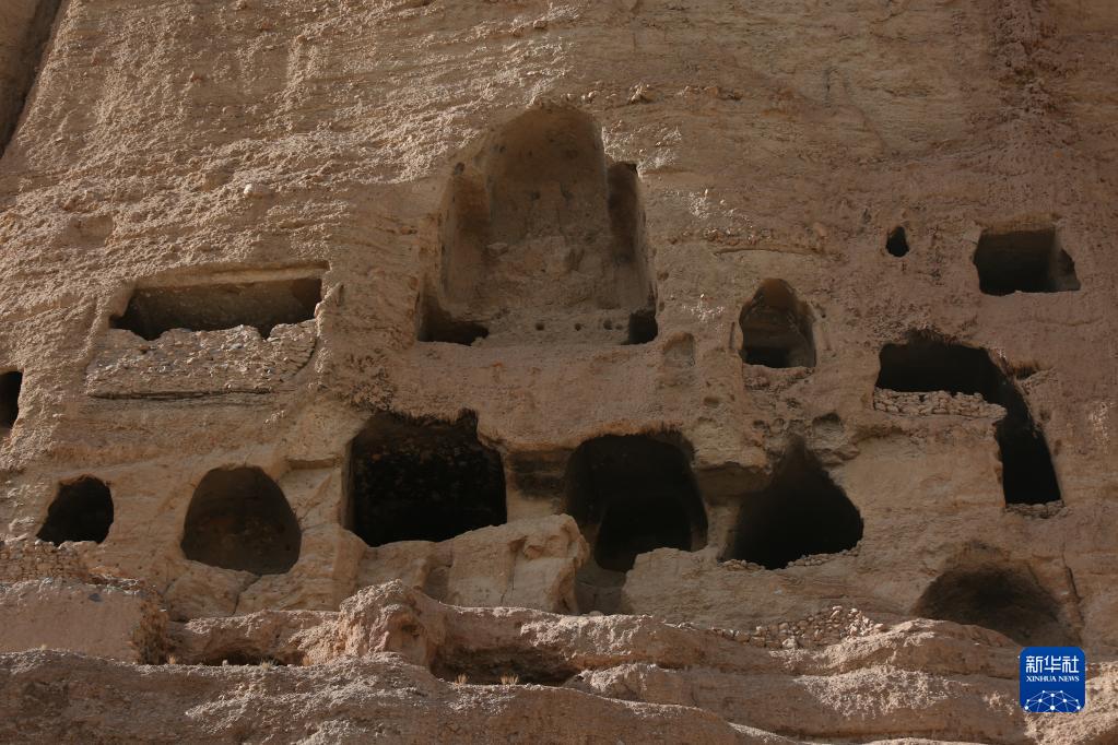 這是7月10日在阿富汗巴米揚拍攝的石窟。