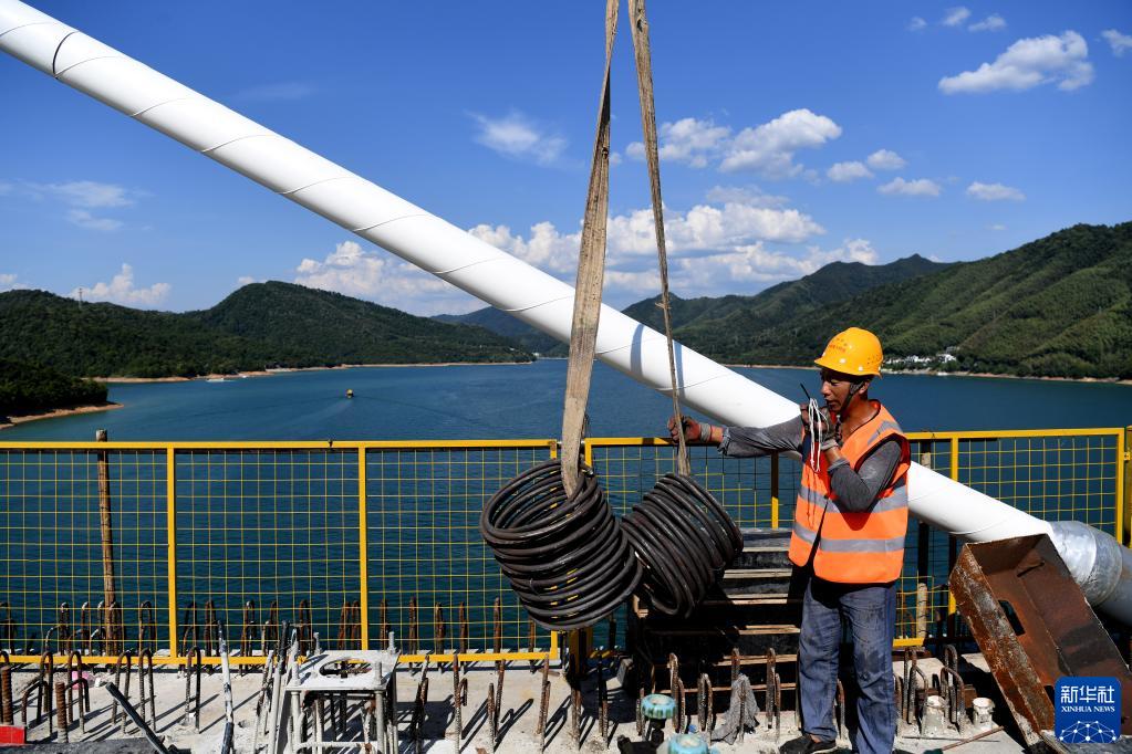 近日,安徽省黃山市持續高溫天氣。在中國鐵建大橋局池(州)黃(山)鐵路太平湖特大橋建設工地,項目部采取錯時施工、發放防暑用品等措施,保護建設者安全,確保工程建設有序推進。池黃鐵路全長約125公里,設計時速350公里,是武(漢)杭(州)快速鐵路通道的重要組成部分。